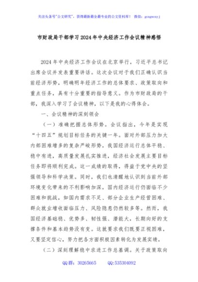 市财政局干部学习2024年中央经济工作会议精神感悟