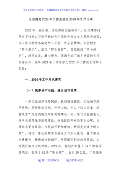 / 区住建局2024年工作总结及2025年工作计划
