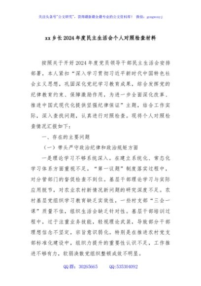 / xx乡长2024年度民主生活会个人对照检查材料