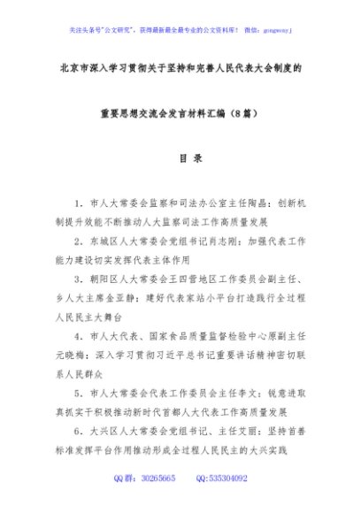 / (8篇)北京市深入学习贯彻关于坚持和完善人民代表大会制度的重要思想交流会发言材料汇编