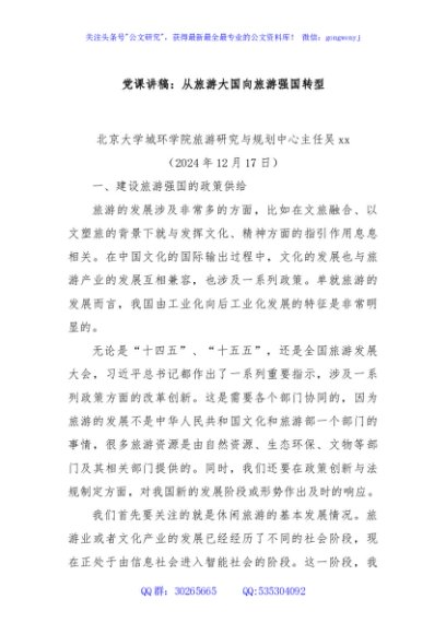 / 党课讲稿:从旅游大国向旅游强国转型