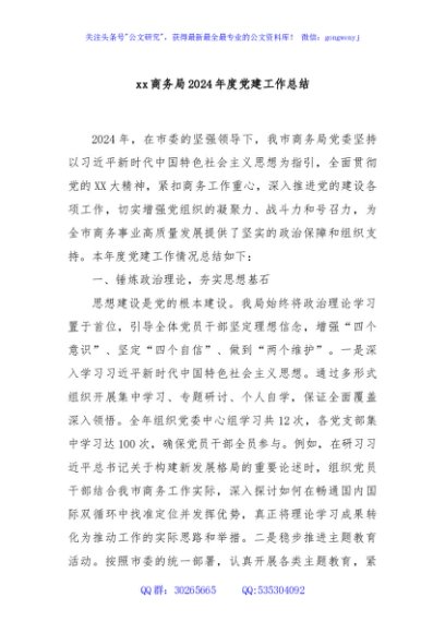 / xx商务局2024年度党建工作总结