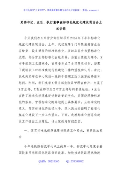/ 党委书记、主任、执行董事在标准化规范化建设现场会上的讲话
