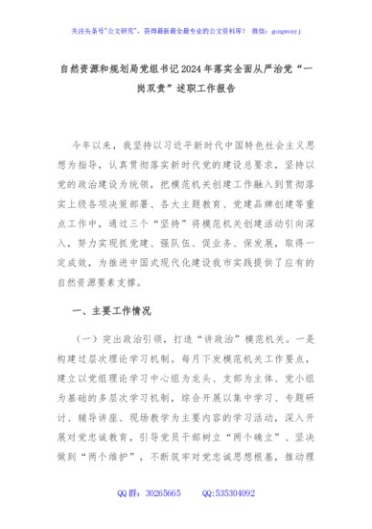 / 自然资源和规划局党组书记2024年落实全面从严治党“一岗双责”述职工作报告