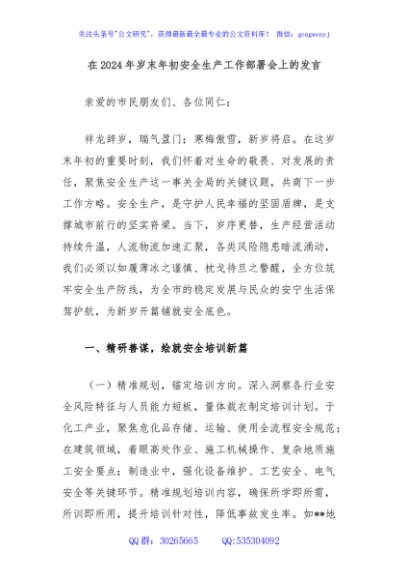 / 在2024年岁末年初安全生产工作部署会上的发言