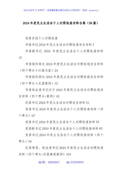 / (58篇)2024年度民主生活会个人对照检查材料合集