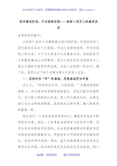/ 筑牢廉洁防线,开启崭新征程——致新入职员工的廉政谈话
