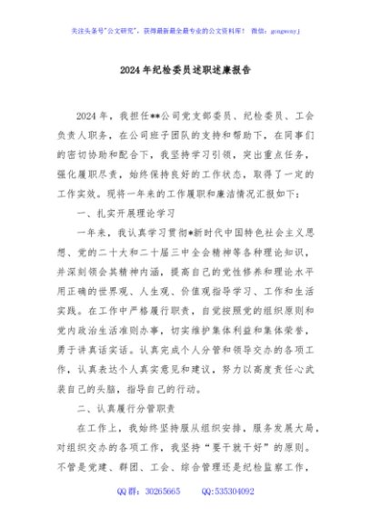 / 2024年纪检委员述职述廉报告
