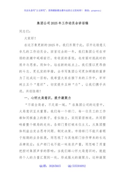 / 集团公司2025年工作动员会讲话稿