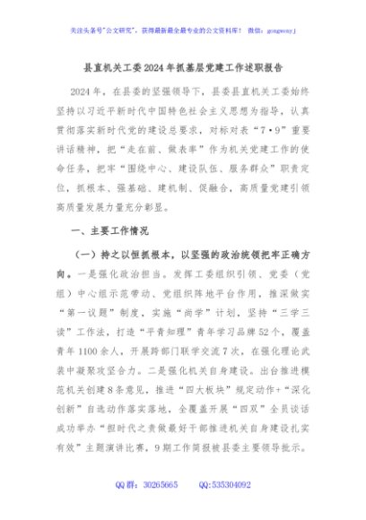 / 县直机关工委2024年抓基层党建工作述职报告