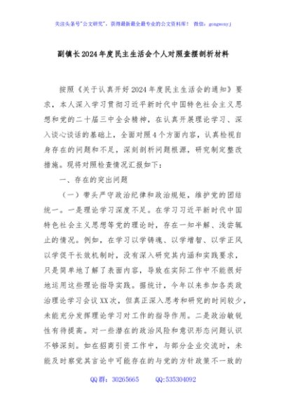 / 副镇长2024年度民主生活会个人对照查摆剖析材料