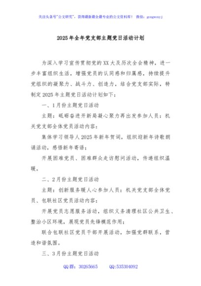 / 2025年全年党支部主题党日活动计划
