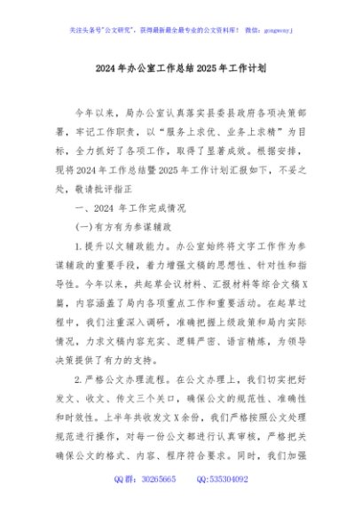 2024年办公室工作总结2025年工作计划