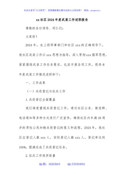 / xx社区2024年度武装工作述职报告