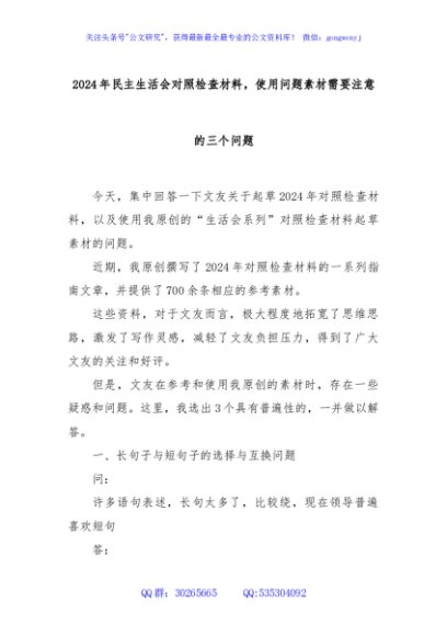 / 2024年民主生活会对照检查材料,使用问题素材需要注意的三个问题