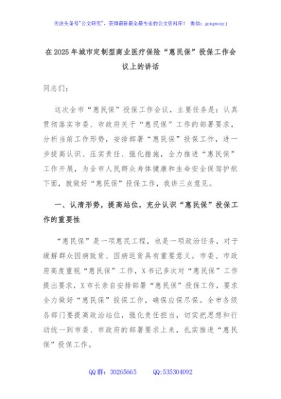 / 在2025年城市定制型商业医疗保险“惠民保”投保工作会议上的讲话