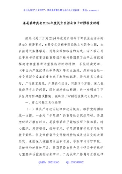 / 某县委常委会2024年度民主生活会班子对照检查材料