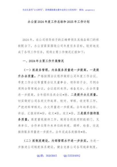 / 办公室2024年度工作总结和2025年工作计划