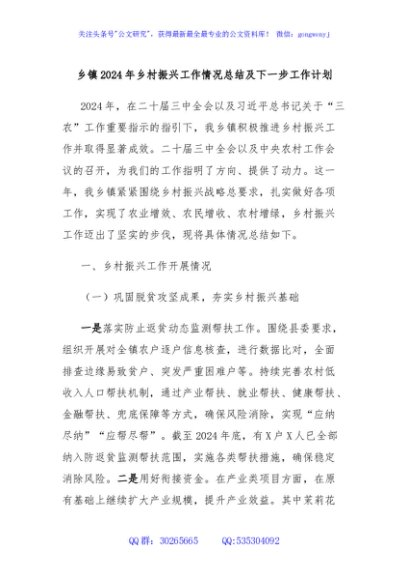 / 乡镇2024年乡村振兴工作情况总结及下一步工作计划