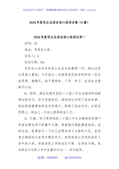 / (6 篇)2024年度民主生活会谈心谈话合集