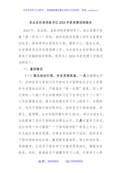 / 农业农村局党组书记2024年抓党建述职报告