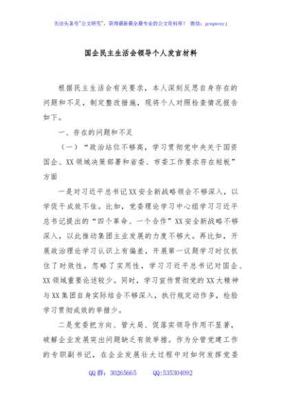 / 国企民主生活会领导个人发言材料