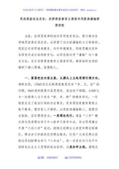 / 思政课座谈会发言:发挥课堂教育主渠道作用提高灌输授课质效
