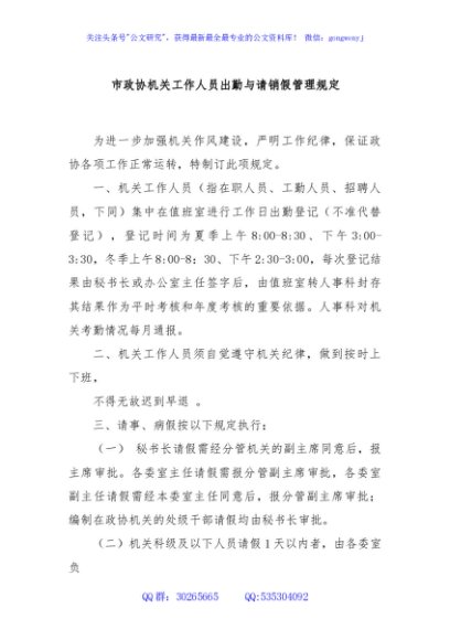 / 市政协机关工作人员出勤与请销假管理规定