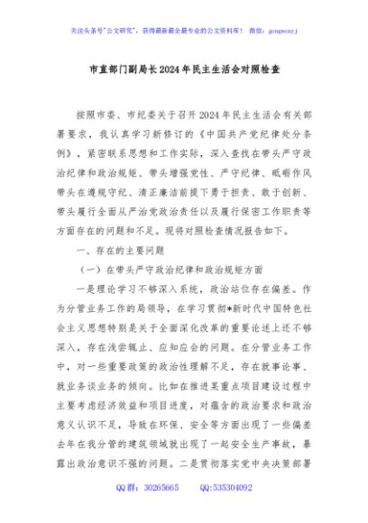 / 市直部门副局长2024年民主生活会对照检查