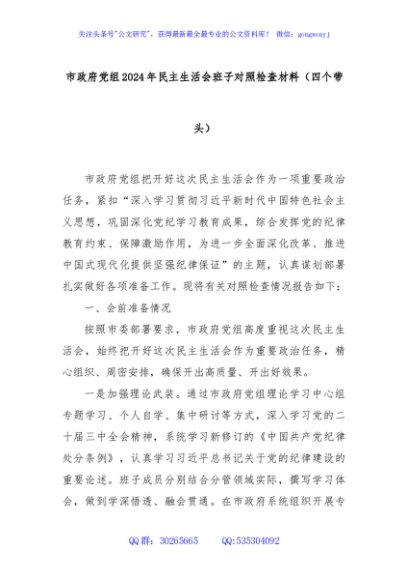 / 市政府党组2024年民主生活会班子对照检查材料(四个带头)