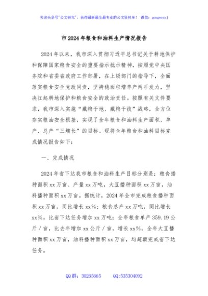 / 市2024年粮食和油料生产情况报告