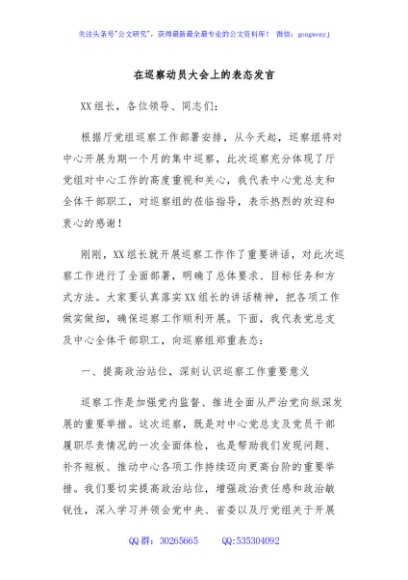 / 在巡察动员大会上的表态发言