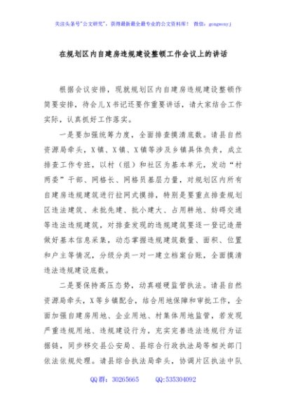 / 在规划区内自建房违规建设整顿工作会议上的讲话