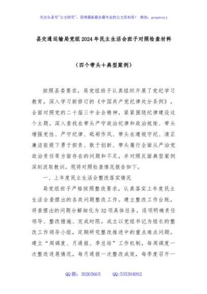 / 县交通运输局党组2024年民主生活会班子对照检查材料(四个带头+典型案例)