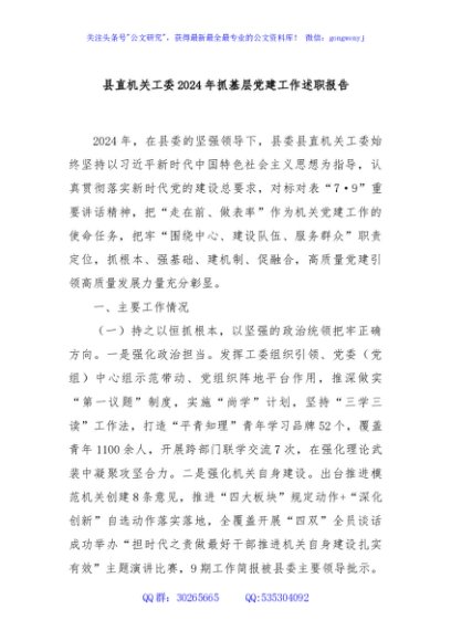 / 县直机关工委2024年抓基层党建工作述职报告