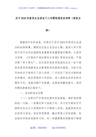 / 关于2024年度民主生活会个人对照检视发言材料(政协主席)