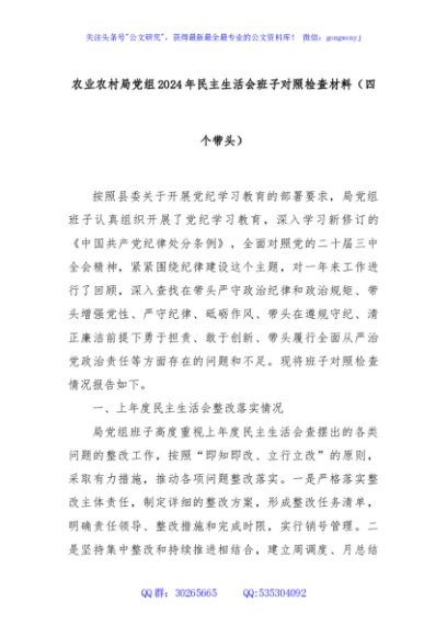 / 农业农村局党组2024年民主生活会班子对照检查材料(四个带头)