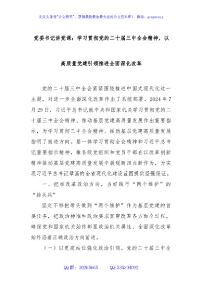 / 党委书记讲党课:学习贯彻党的二十届三中全会精神,以高质量党建引领推进全面深化改革