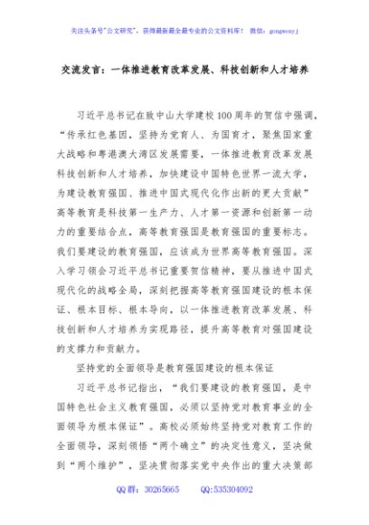 / 交流发言:一体推进教育改革发展、科技创新和人才培养