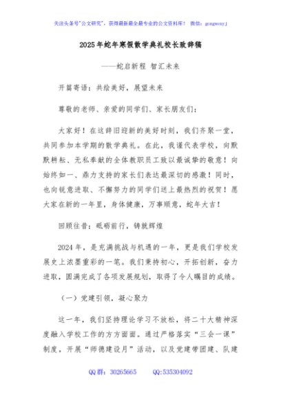 / 2025年蛇年寒假散学典礼校长致辞稿