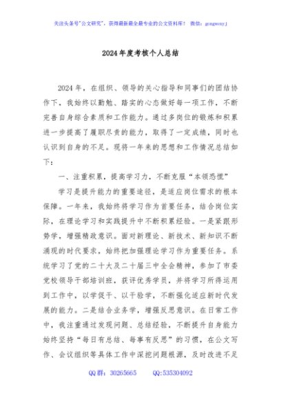 / 2024年度考核个人总结