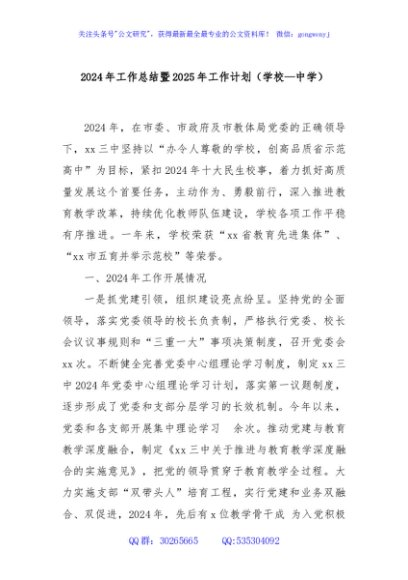 / 2024年工作总结暨2025年工作计划(学校—中学)