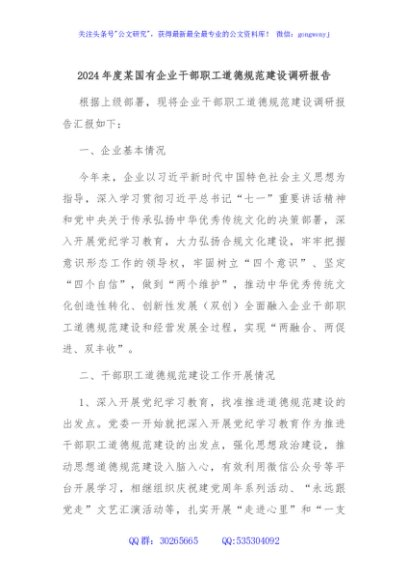/ 2024年度某国有企业干部职工道德规范建设调研报告