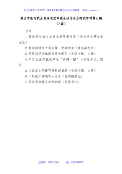 (7篇)在全市新时代全面深化改革理论研讨会上的发言材料汇编