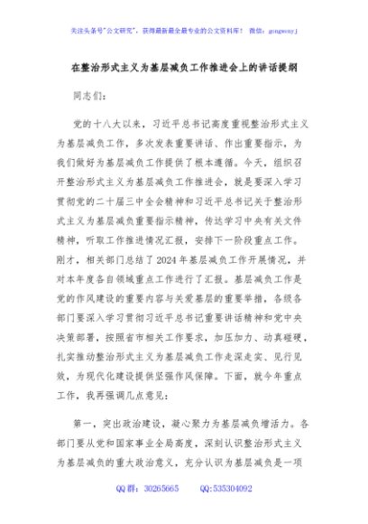 / 在整治形式主义为基层减负工作推进会上的讲话提纲