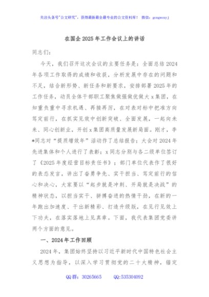 / 在国企2025年工作会议上的讲话