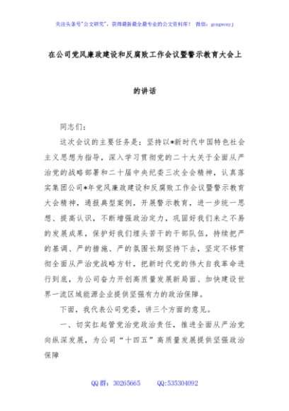 / 在公司党风廉政建设和反腐败工作会议暨警示教育大会上的讲话
