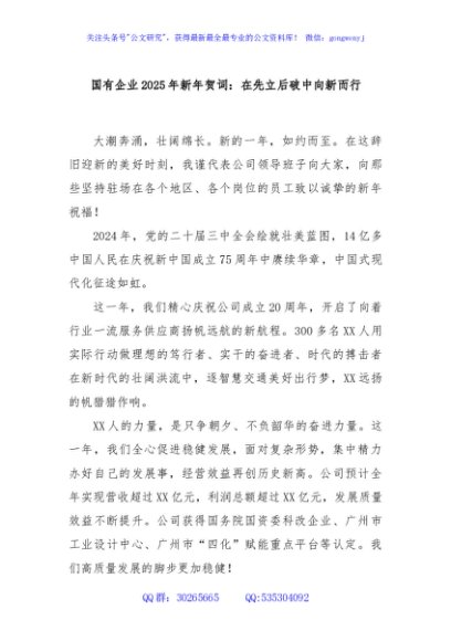 / 国有企业2025年新年贺词:在先立后破中向新而行