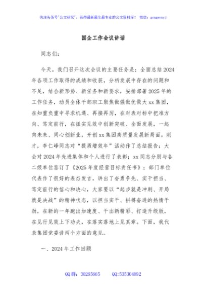 / 国企工作会议讲话