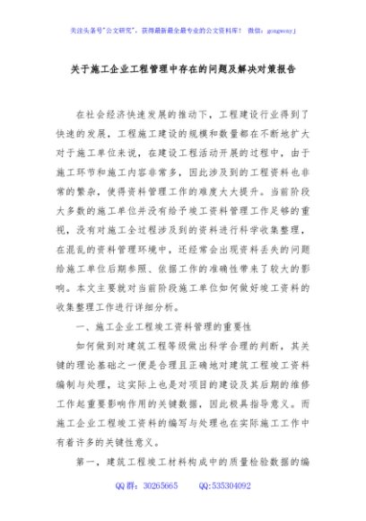 / 关于施工企业工程管理中存在的问题及解决对策报告